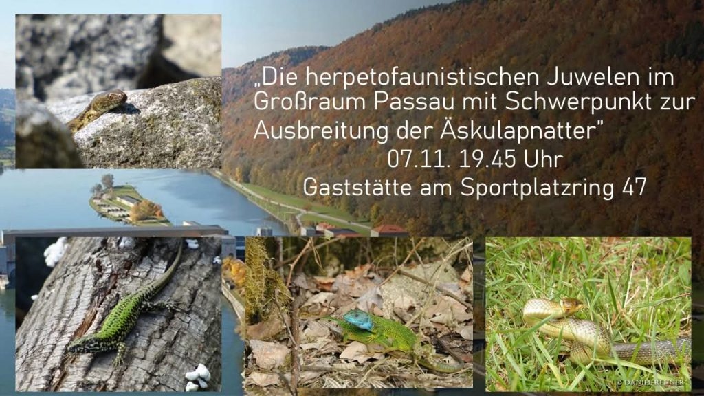 wir freuen uns sehr, Euch zu unserem nächsten Vereinsabend am Freitag, den 07.11.2025, einladen zu dürfen. Wir treffen uns wie gewohnt in unserer Vereinsgaststätte „Am Sportplatzring“, Sportplatzring 47, 22527 Hamburg. Als Referenten dürfen wir dann Daniel Renner mit seinem Vortrag „Die herpetofaunistischen Juwelen im Großraum Passau mit Schwerpunkt zur Ausbreitung der Äskulapnatter“ begrüßen.